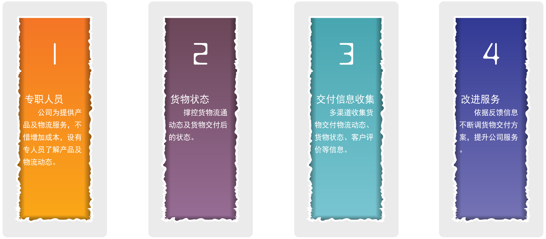 引泓為了提升客戶服務,設有專職人員,跟蹤貨物流通全程,實時撐控貨物流通動態,以及對貨物送達后,貨物狀態,物流人員服務等作進一步的跟蹤,多渠道收集交付反饋信息,不斷調整交付方案,追求極致服務,是引泓人的宗旨。